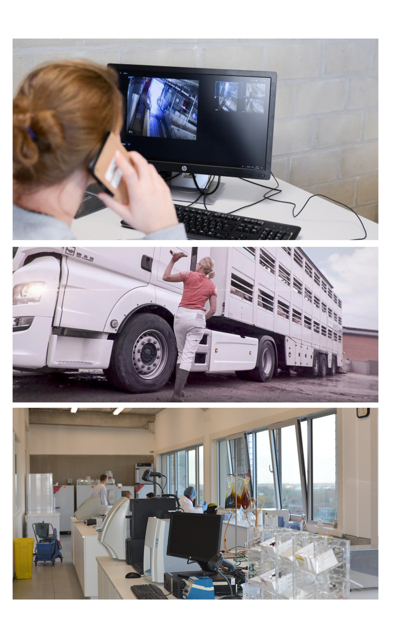 Luc: Op dat vlak leggen wij de lat hoger dan wat de wet ons voorschrijft, want wij willen zelf het referentiekader zijn. Wij omringen onze dieren met de beste zorgen, van boerderij tot productieruimte. Onze investeringen in cameramonitoring en gekwalificeerd personeel zoals een animal welfare officer tonen dat aan. Maar we leunen niet voldaan achterover. Volgend jaar vernieuwen we in functie van dierenwelzijn onze verdovingsapparatuur. Op eigen initiatief, want wettelijk gezien was dit zeker niet nodig. Daarnaast voerden we de opleiding van onze vrachtwagenchauffeurs nog wat meer op. Want ook het correct laden en lossen van de levende dieren en zelfs een aangepaste rijstijl van de transporteur leiden tot een beter dierenwelzijn en vleeskwaliteit. En natuurlijk zullen we in 2019 ook onze voortrekkersrol op vlak van antibioticavrij vlees blijven spelen.