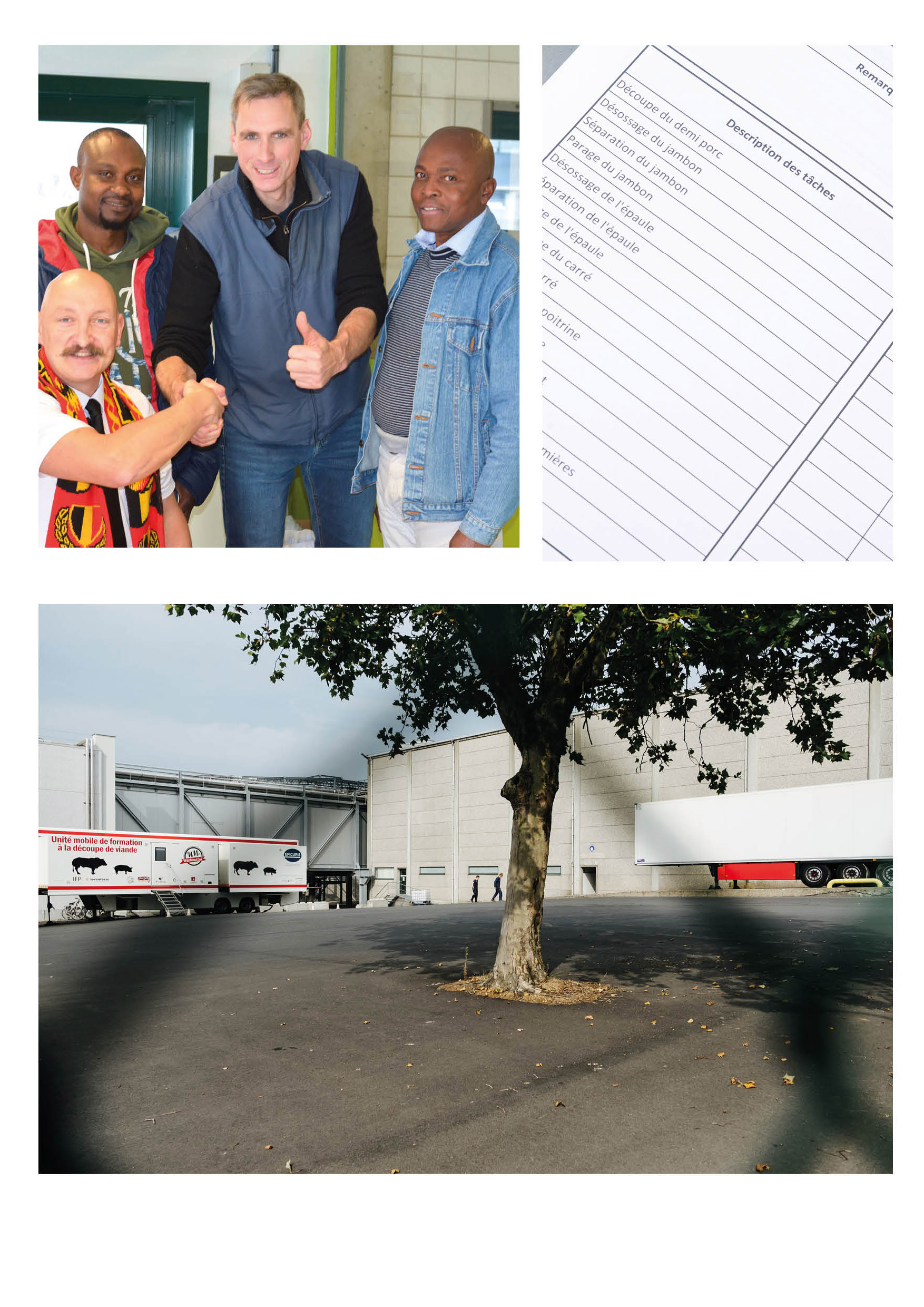 Michael: In de opleidingswagen van Epicuris die zich op de bedrijventerreinen van Belgian Pork Group bevond, verwierven mijn Waalse medecursisten en ik de nodige kennis en vaardigheden om in de snijzaal aan de slag te kunnen gaan. Versnijden, uitbenen,… we beheersen het nu allemaal!
