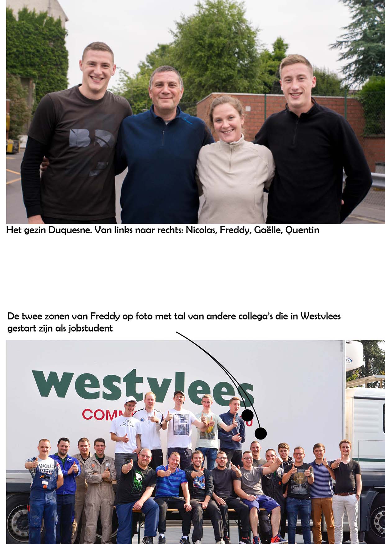 Zeker. Vroeger vertrokken we allemaal samen van bij ons thuis. Maar sinds 1 jaar woont mijn dochter Gaëlle samen met haar vriend. Zij komt ons oppikken met de auto, om dan allemaal samen te vertrekken richting Westvlees. Aangezien mijn twee zonen Nicolas en Quentin nog thuis wonen, zie en hoor ik hen nog heel vaak, maar eens ook zij het huis zullen verlaten zal het des te aangenamer zijn om hen elke dag te zien en hun verhalen te horen.